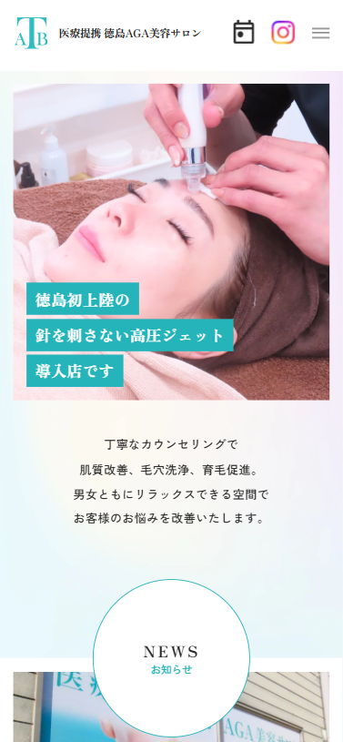 徳島初上陸の針を刺さない高圧ジェット導入店であり、完全プライベートサロンになります。